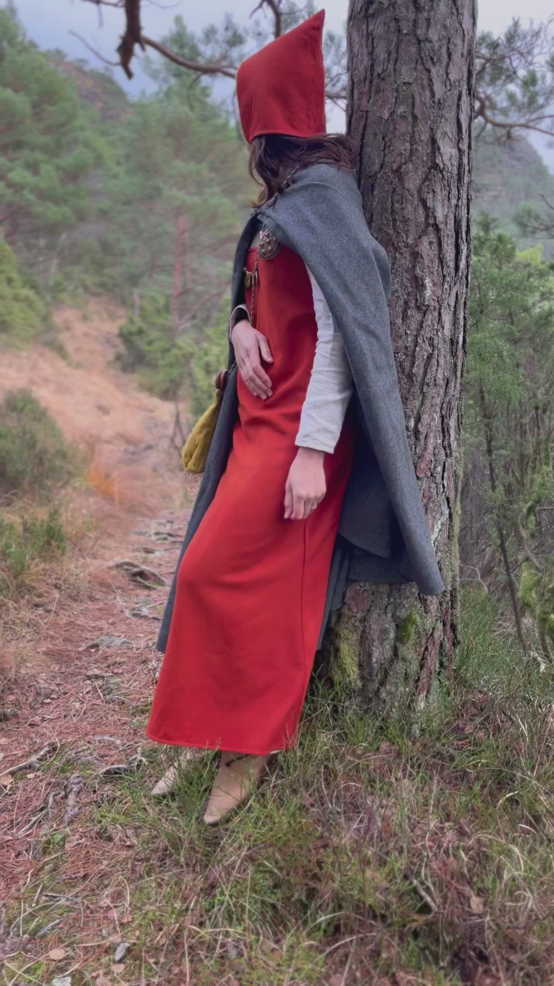 Each FREYDIS is entirely hand-sewn using techniques documented in Haithabu's textile corpus. From the characteristic three-panel construction preserved in the harbor finds to the precise loop placement evidenced in the grave discoveries, every element reflects the archaeological record. We use only premium thin twill wool (290 g/m²), matching the thickness and quality found in Haithabu's textile fragments, ensuring your garment is as authentic as it is beautiful.