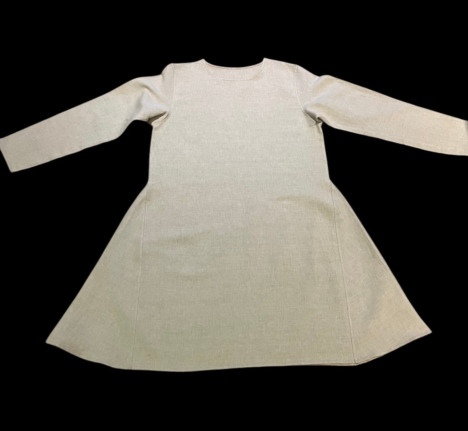Design: Crafted based on Haithabu fragments for historical accuracy, this tunic features a fitted upper body and a voluminous skirt that flares with four gores, creating an elegant yet functional silhouette. The tunic includes a unique curved armhole inspired by fragments 72 A & B from Haithabu, setting it apart from other styles like Birka and Kragelund. The sleeves are fitted and constructed in one piece, following both Haithabu and Moselund styles, and the tunic falls to knee-length for an authentic Viking Age appearance.