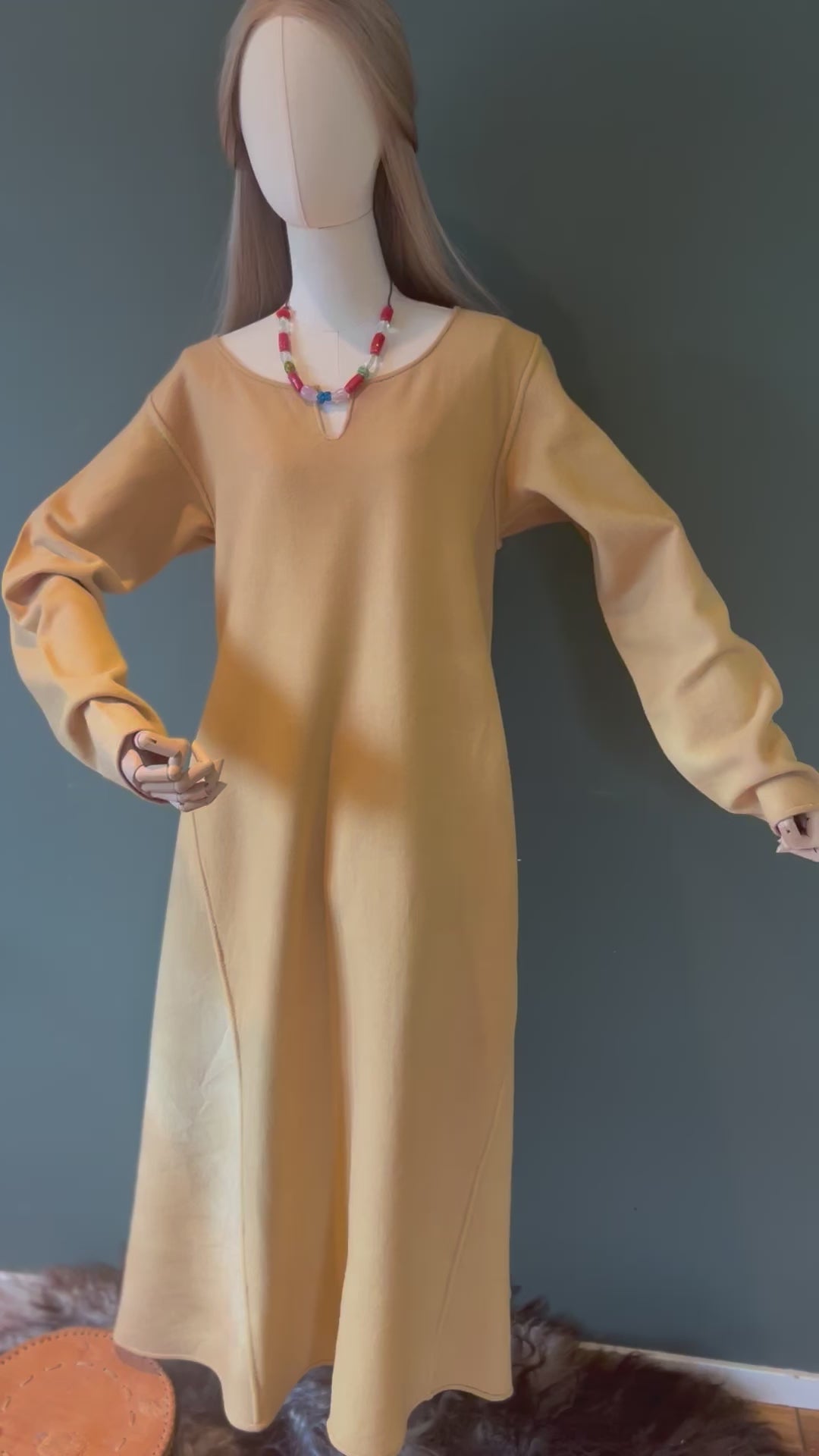 Crafted from the finest wool sourced from woolsome.shop and then plantd-dyed with Buckthorn Tree Bark. Dress is fully hand-stitched using traditional techniques found on historical textile fragments from Haithabu. We pour our passion and attention into every garment, ensuring each piece is a work of art.